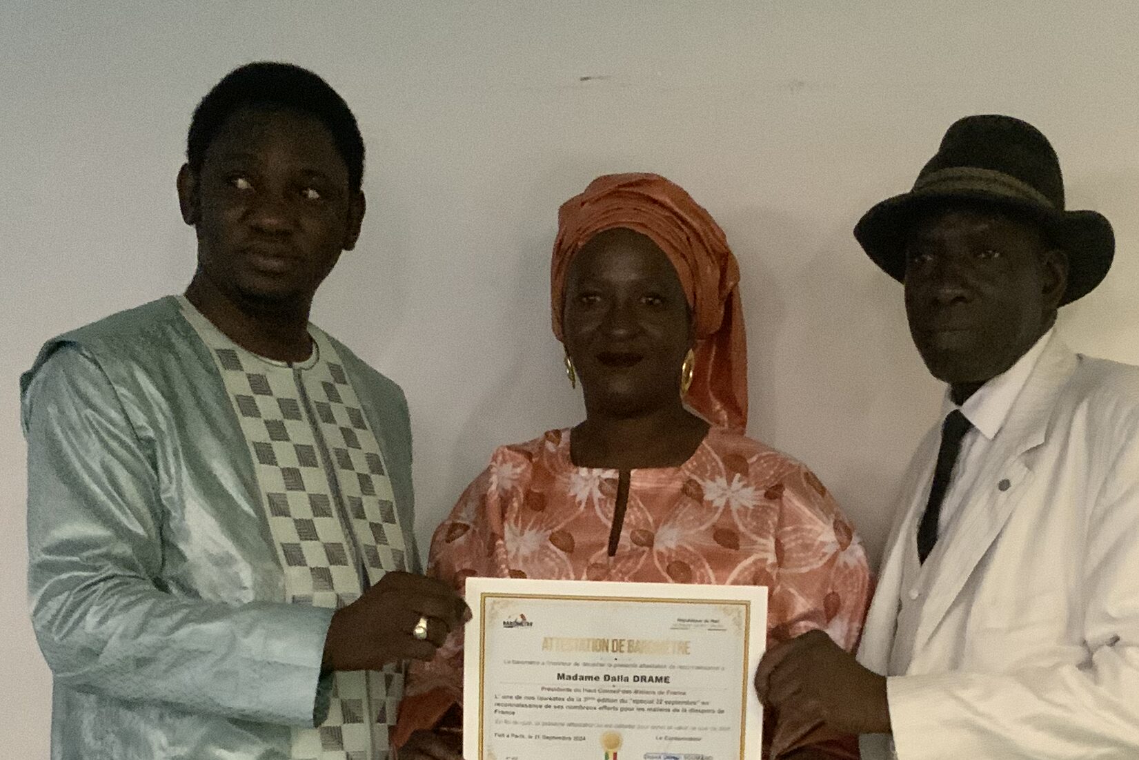 1 – La Présidente Madame Dalla DRAMÉ a été lauréate du Baromètre en reconnaissance de ses nombreux efforts pour les maliens de France…Toutes mes félicitations à Mme la Présidente.